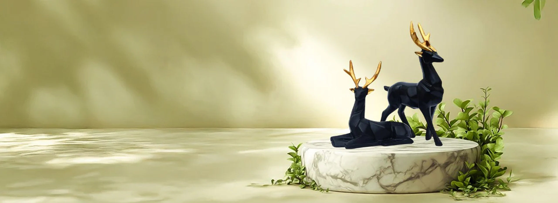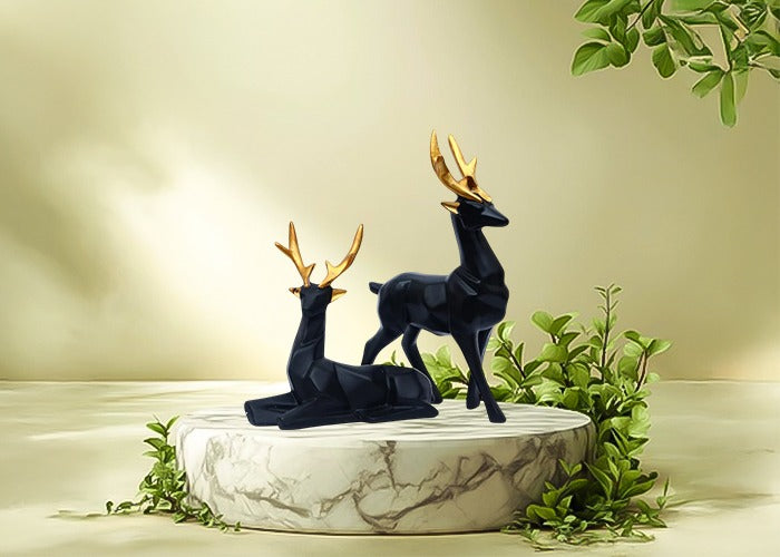 Set of 2 black deer showpieces for home and office décor, elegant addition.
