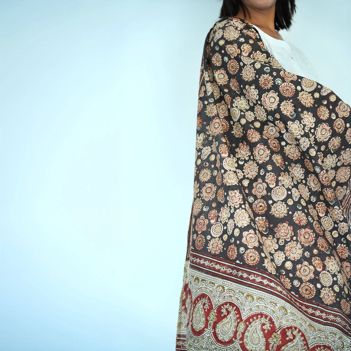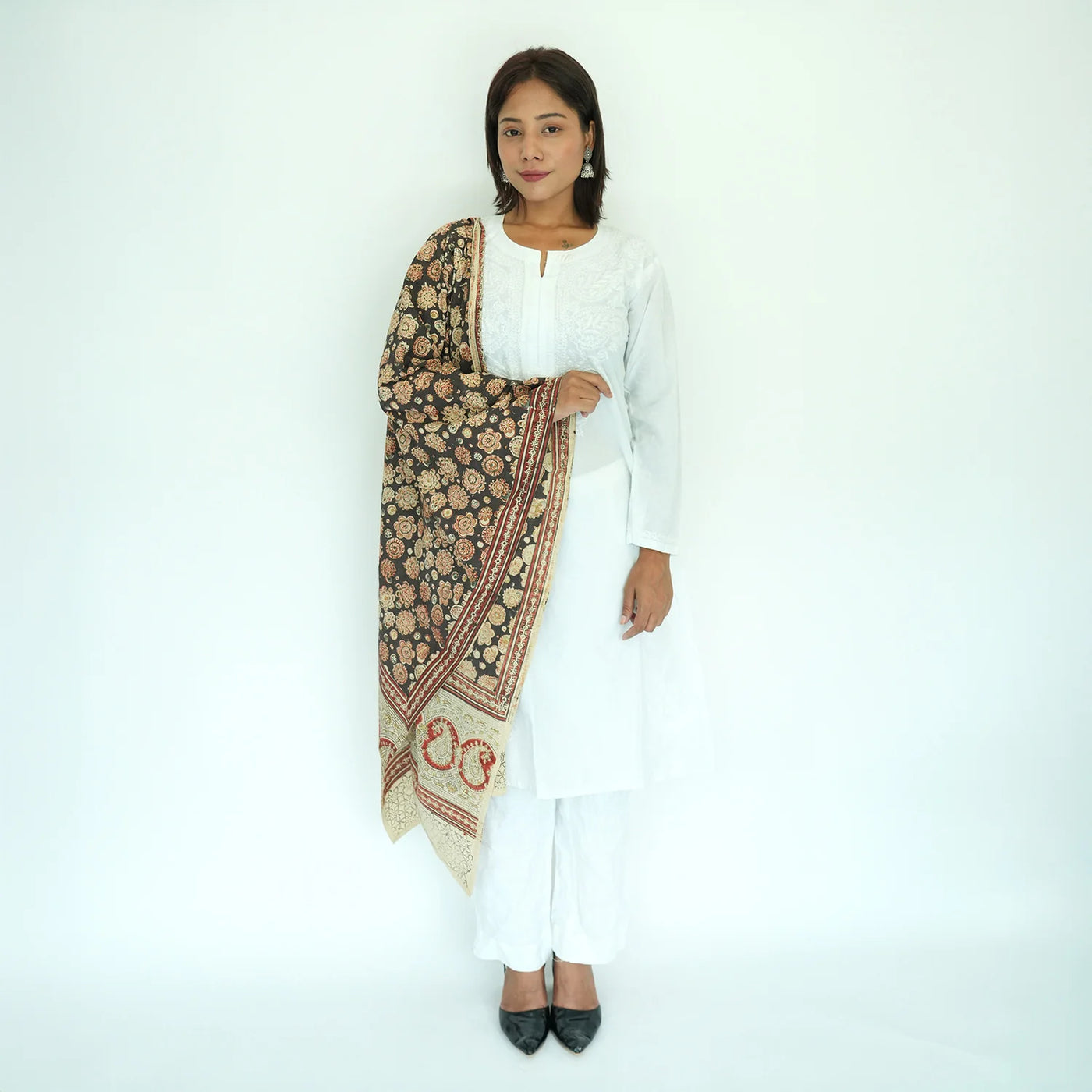 Elevate your style with the timeless charm of the Chanderi Hand Block Printed Dupatta — a delicately handcrafted accessory that combines rich heritage with effortless grace. Woven in the heart of India using Chanderi silk, this dupatta is adorned with Bagru-inspired hand block prints and subtle zari threads, creating a piece that is as festive as it is versatile.
