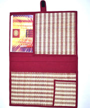 Constructed from dyed and natural mat grass, bordered with dyed and natural cotton yarn, and lined with poplin cloth, this folder is internally supported with a rubber sheet and pitch board for structure. Assembled with eco-friendly adhesives and durable sewing threads, this folder stands out as a biodegradable and reusable solution to plastic file holders—perfect for both personal and professional use.