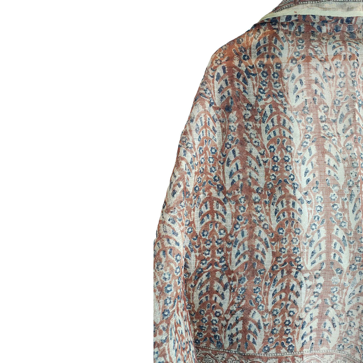 Handcrafted using the traditional Kota Doria weaving technique and adorned with Bagru-style floral prints, this dupatta speaks volumes through subtlety. The lightweight cotton-silk blend, infused with metallic thread, offers both comfort and a gentle sheen, perfect for day-to-night styling.