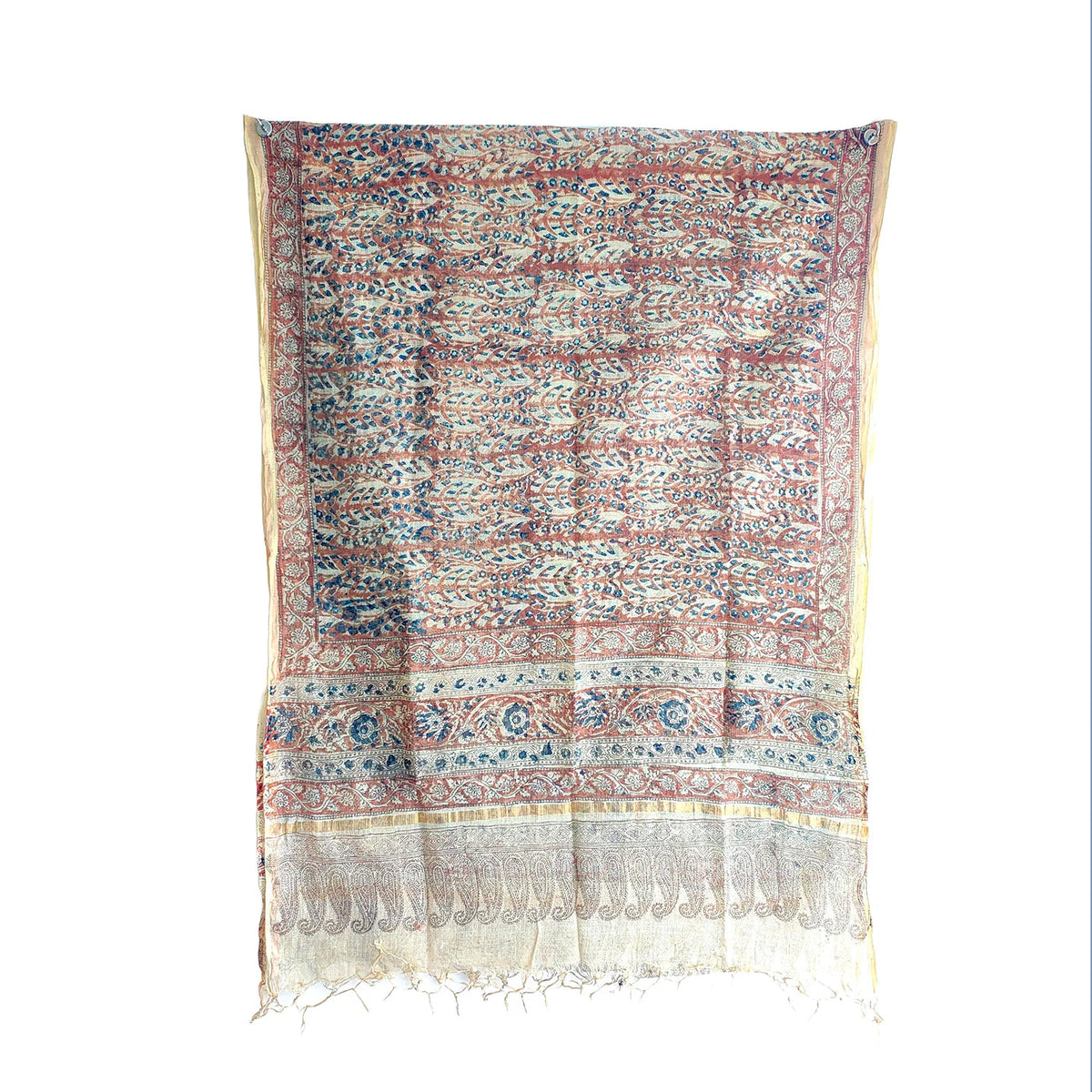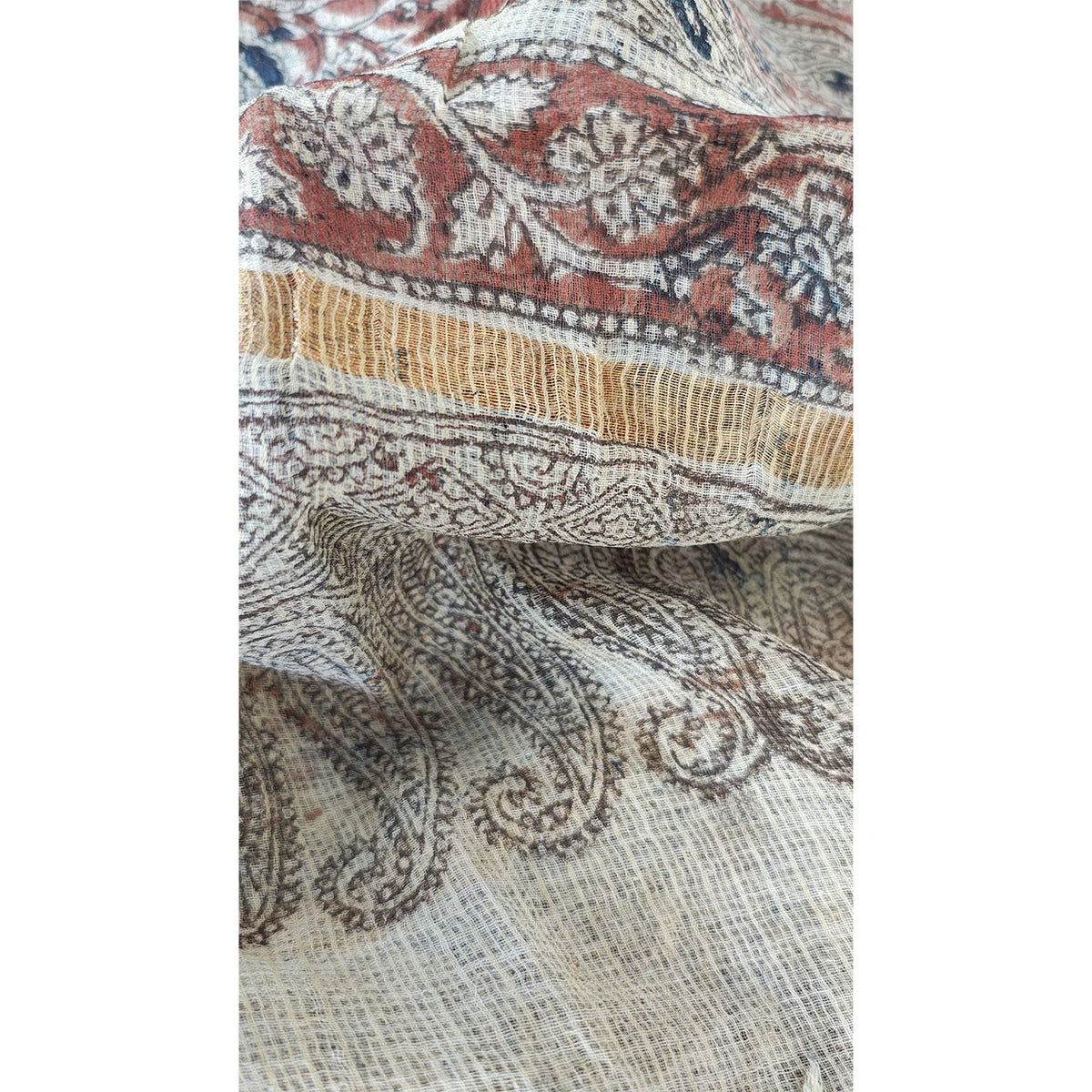 Kota Doria Kalamkari Cotton Silk Grey Colour Floral Dupatta